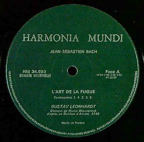 商品コード:1265-004[Harmonia Mundi] G.レオンハルト, B.v.アスペレン(cemb)-- Contrepoint 12と18のみ参加 / バッハ:フーガの技法B.1080(全曲)
