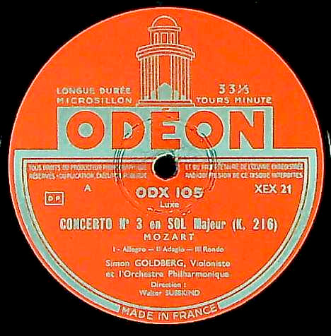 商品コード:1274-019[ODÉON] S.ゴールドベルク(vn) W.ジュスキント指揮フィルハーモニアo. / モーツァルト:Vn協奏曲3番K.216, Vn協奏曲4番K.218