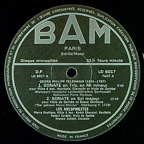 商品コード:1280-057[BAM] メロフィルテ P.プルトー(fl) A.シュヴァレ(ob) R.コルディエ(gamb) Y.シュミット(cemb) / テレマン:トリオ・ソナタ(3曲), パルティータ
