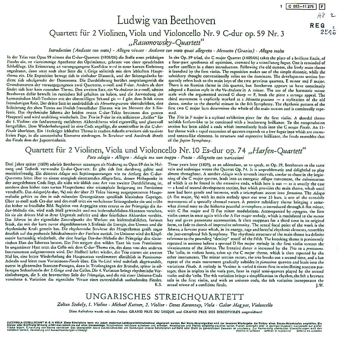 商品コード:REG-2546t[独ELECTROLA] ハンガリーQt. / ベートーヴェン:SQ9番Op.59-3, 10番Op.74