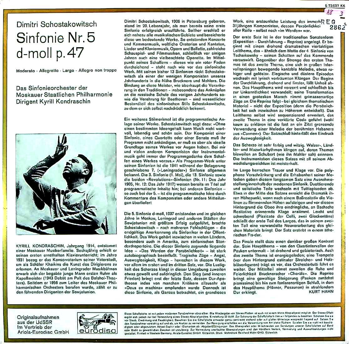 商品コード:REG-2862t[独EURODISC] K.コンドラシン指揮モスクワpo. / ショスタコーヴィチ:交響曲5番Op.47