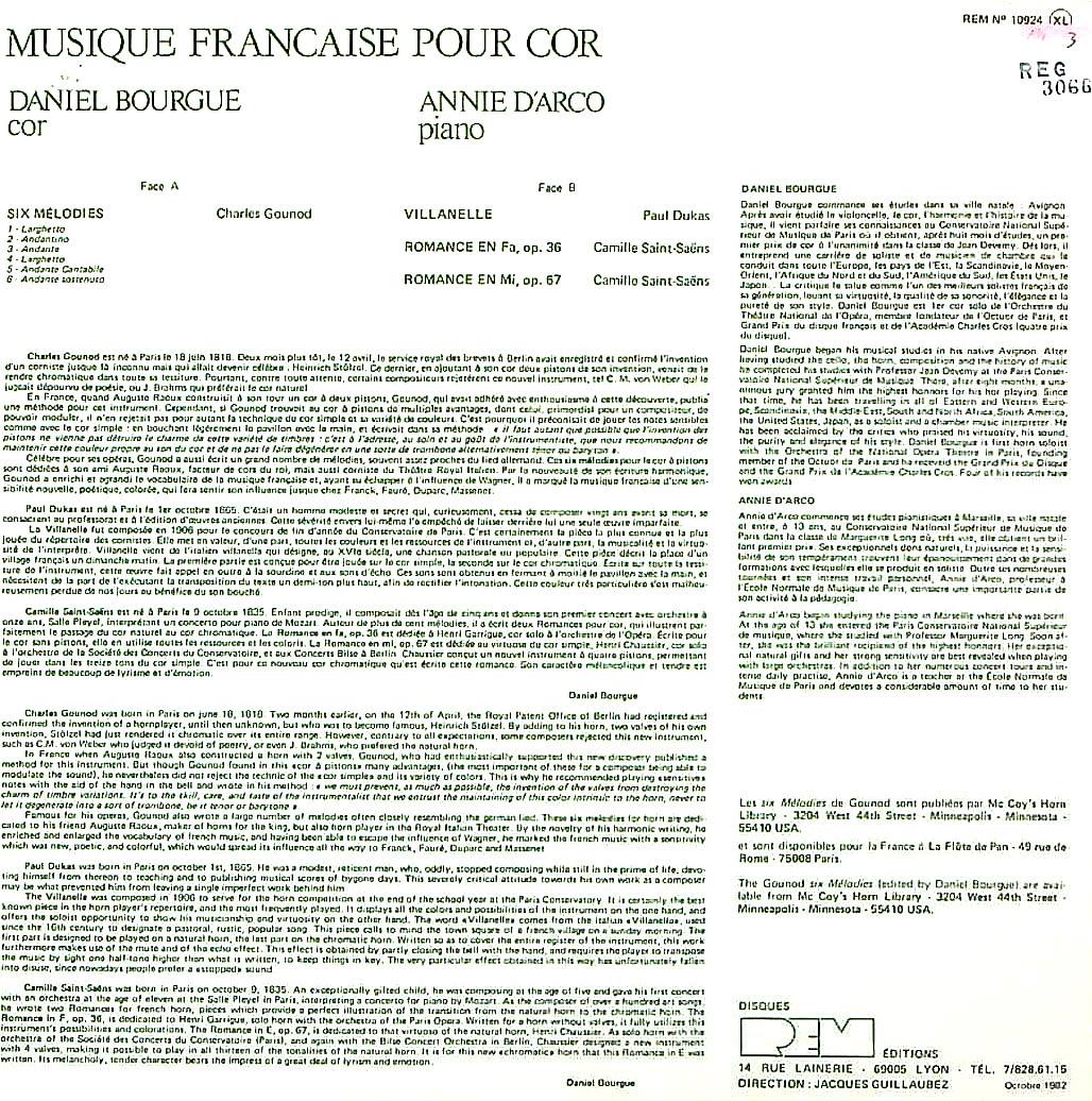 商品コード:REG-3066t[仏REM] D.ボーグ(hn)/ 「Hnのためのフランス音楽」グノー, デュカス