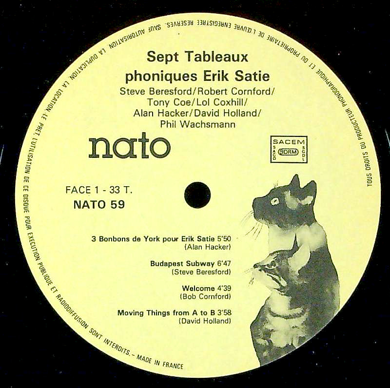トピックス:黄/黒GG, 見開表コート, '84年頃リリース, NATOレーベルに所縁のある英国プレイヤー達による制限時間6分のサティのスケッチ作曲ゲーム, ジャズやガムランなどジャンルレスなオムニバス・アルバム