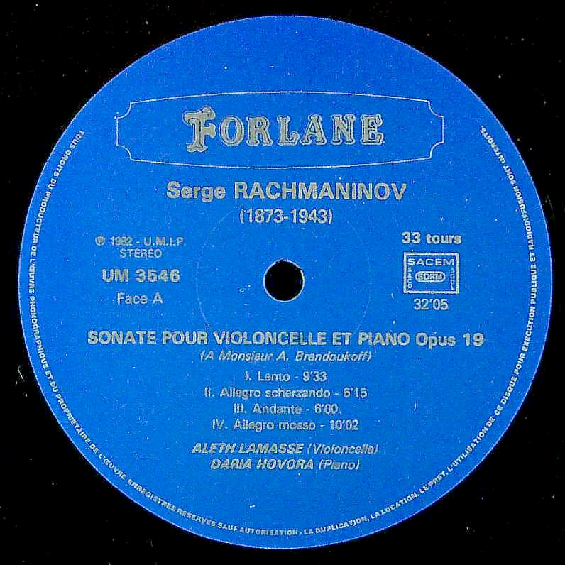 商品コード:REG-3010[仏FORLANE] A.ラマッセ(vc)/ ラフマニノフ:Vcソナタ, サン・サーンス:Vcソナタ1番
