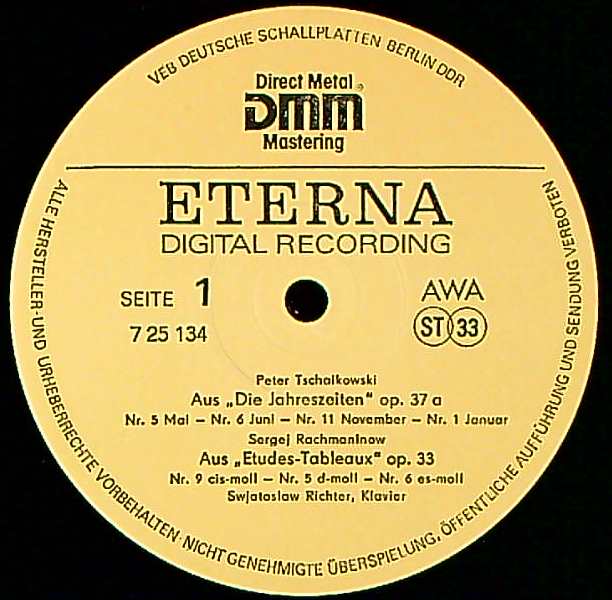 商品コード:REG-3233t[東独ETERNA] S.リヒテル(pf) / チャイコフスキー:「四季」~1月, 5月, 6月, 11月, ラフマニノフ