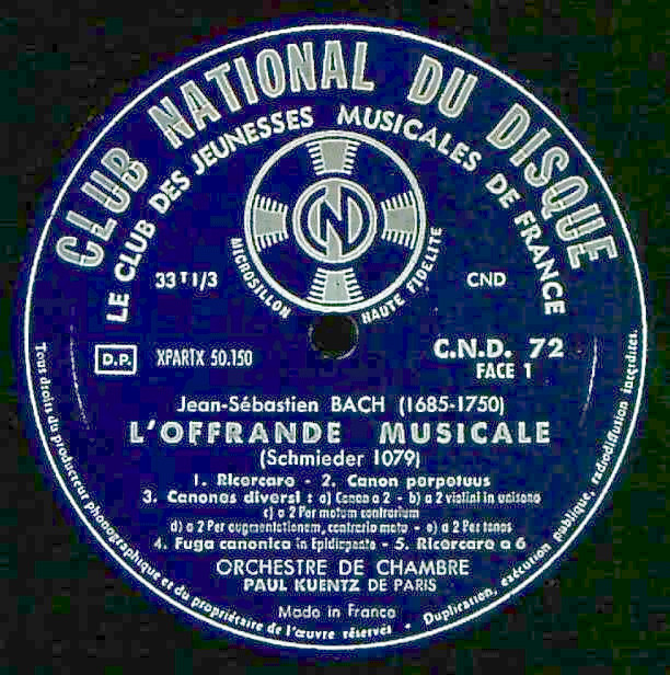 商品コード:1319-016b[CLUB NATIONAL] P.キュンツ指揮/ バッハ:音楽の捧げ物