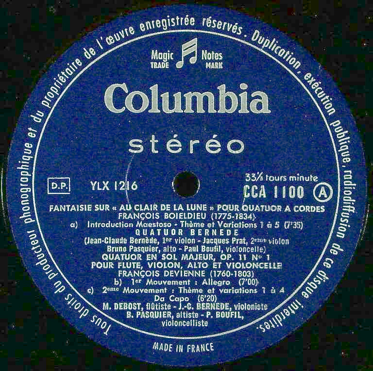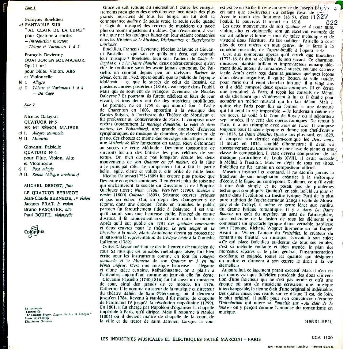 商品コード:1327-022[COLUMBIA] ベルネードQt./ ボイエルデュー:月の光, ドヴィエンヌ:Fl四重奏曲, ダレーラク, パイジェッロ