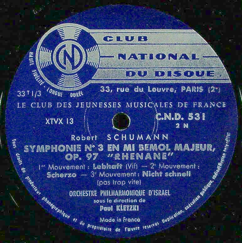 商品コード:REG-3415[仏Club National de Disques] P.クレツキ指揮/ シューマン:交響曲3番「ライン」, マンフレッド序曲