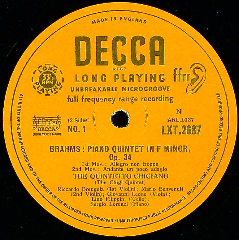 商品コード:1330-061p[DECCA] キジアーノPf五重奏団/ ブラームス:Pf五重奏曲