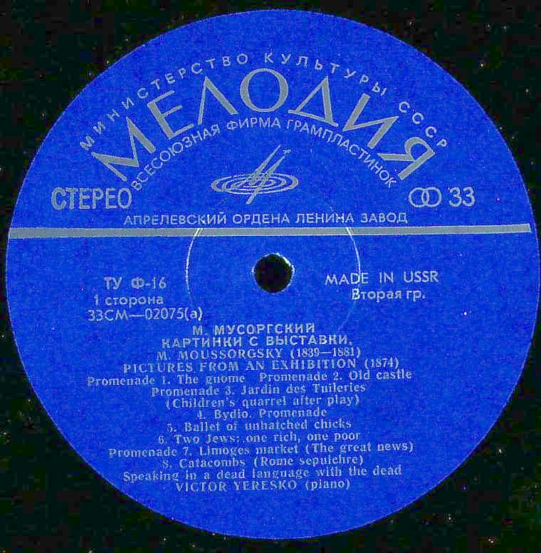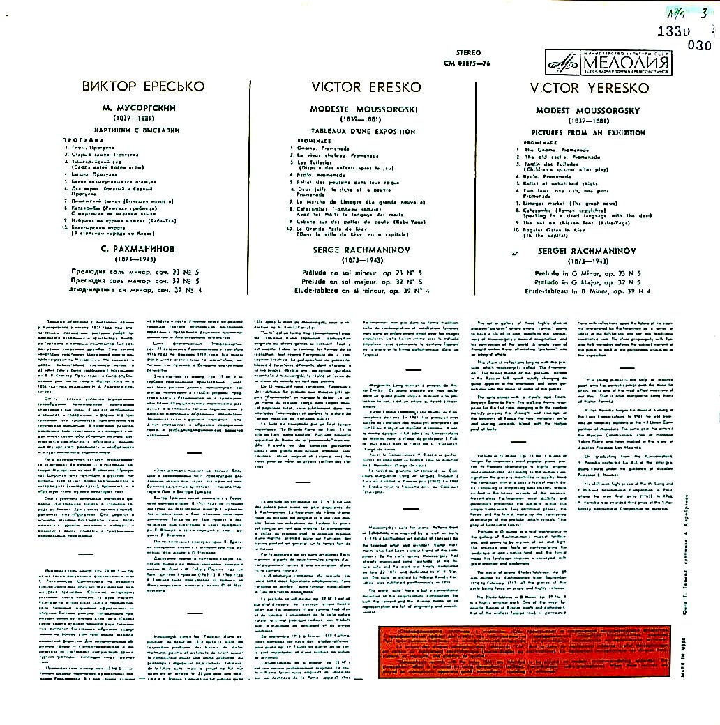 商品コード:1330-030p[MELODIYA] V.エレシコ(pf) / ムソルグスキー:展覧会の絵, ラフマニノフ:前奏曲 他