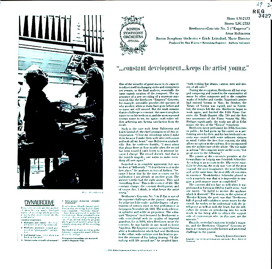 商品コード:REG-3427[米RCA] A.ルービンシュタイン(pf)/ ベートーヴェン:Pf協奏曲5番「皇帝」