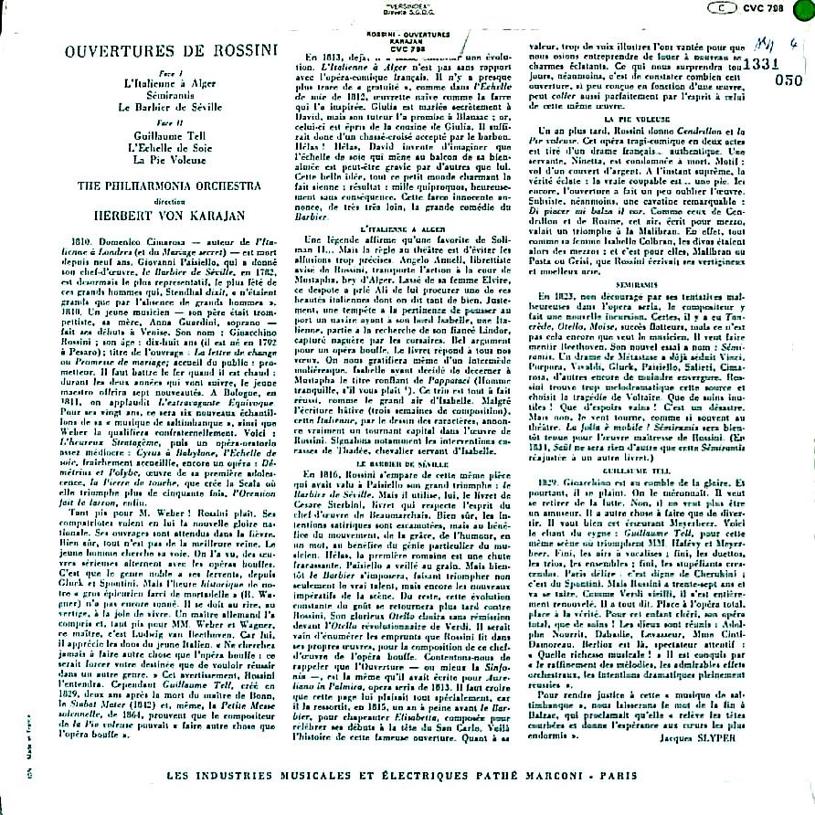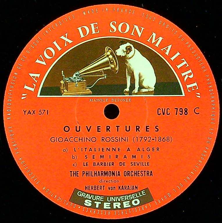 レーベルタイプ:【フランスでのステレオ・再版(第3版)/VSMでの初出】---赤白SCニッパー段なし中STEREO (Gravure Universelle STEREO), 12時にMade in Fance(ラウンド白字), グルーヴガード厚手, 表記されたレコード番号:CVC 798 C, Price Code:C, Rights Society:記載なし, (P)なし, スタンパー/マトリクス:YAX 571-8/YAX 572-11 (ラウンド小文字スタンパー・英EMI/Pathéタイプ), EMIグループCOLUMBIA系の英国ステレオ製造を示すYAX***で始まりレコード番号を含まない英国型フランス専用スタンパー使用, 補助マトリクス:ラウンドM6スタンパーM6 254451/M6 237110(最古ではない), 再補助マトリクス:なし・パテキュラー(Patéculaire)はない, 英国型ラウンド本体とラウンドMスタンパー2種併存のPathéプレス, 1960年代のスタンパーによる1968年頃製造分, フラット盤は存在せず, 仏COLUMBIAに旧番号存在する, 旧番号に紺/銀音符段付Stéréoレーベル/紺/銀音符段なしStéréoレーベル存在する, 当番号に赤白SCニッパー段なし大stéréoレーベル存在せず, これより古い仏レーベル存在する, フランスでの最古レーベル・最厚プレスではないがVMSでは最初のレーベル, 更に古いマトリクス存在する, 仏COLUMBIAにモノラル存在する(VSMにはない), RIAAカーヴである, EMIグループCOLUMBIA系のドイツ音源のLa Voix De Son Maître製作Pathéプレス, 工場:Pathé Marconi, Chatou, フランスでのステレオ第3版と思われる, re issue in Fr.