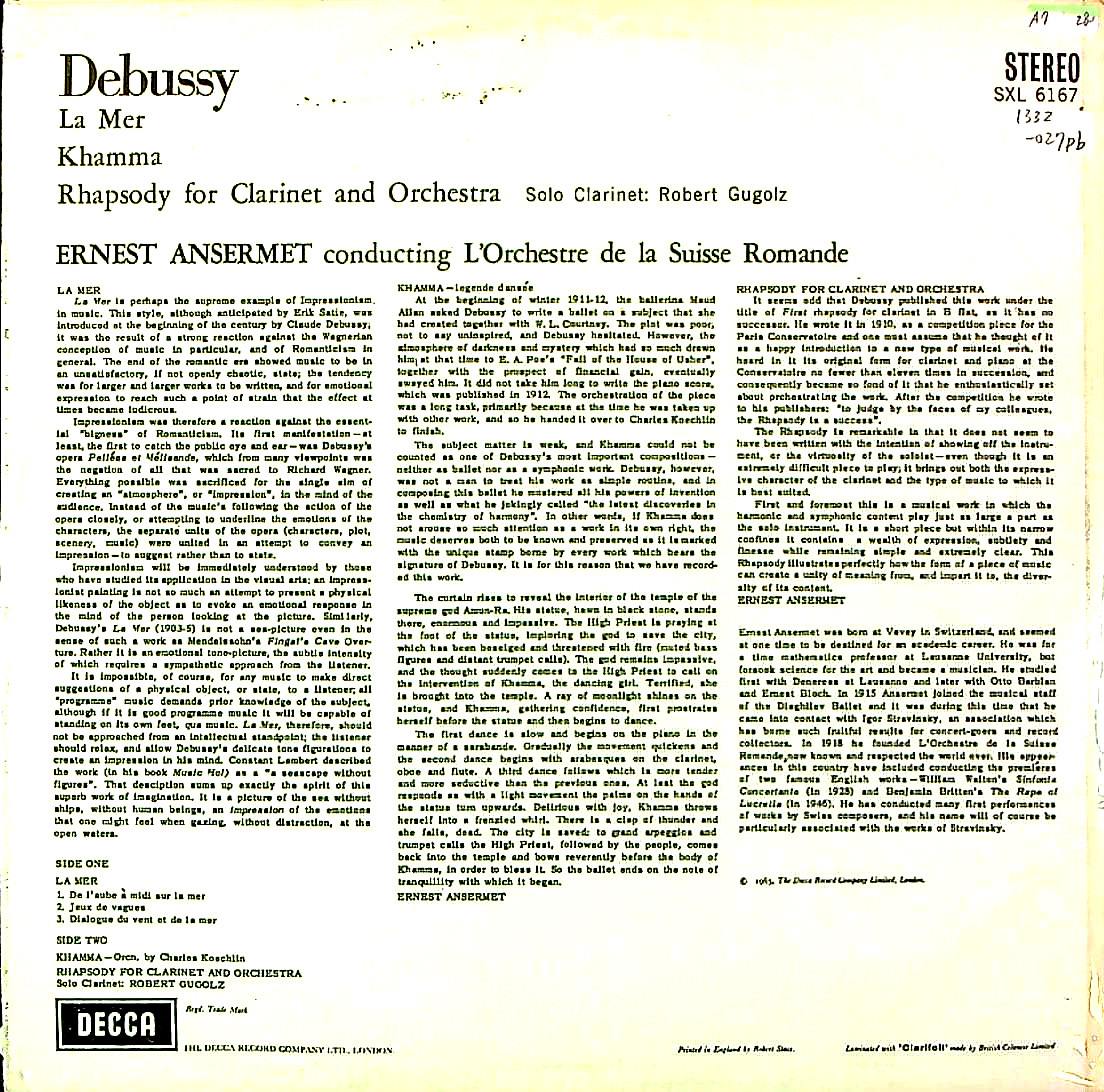 商品コード:1332-027pb[DECCA] E.アンセルメ指揮 R.グゴルツ(cl) / ドビュッシー:海, Cl狂詩曲, カンマ(ケクランOrch編曲)
