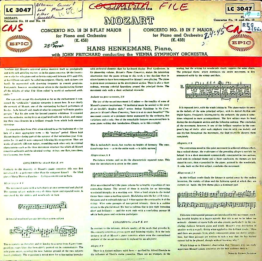 商品コード:REG-3466p[米EPIC] H.ヘンケマンス(pf)/ モーツァルト:Pf協奏曲18, 19番