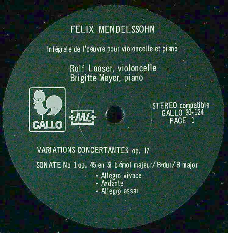 商品コード:REG-3461[スイスGALLO] R.ローザー(vc) B.マイヤー(pf) / VcとPfのための作品全集/メンデルスゾーン:協奏的変奏曲 他