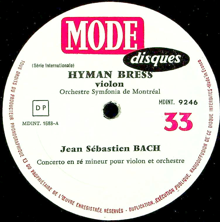 商品詳細:超が付く珍品、1950年代のモノラル録音。ハイマン・ブレス( 1931- 1995)は1931年南アフリカ共和国でのカナダ人の両親の下に生まれたカナダのヴァイオリニスト。、幼少時に父親からヴァイオリンの手ほどきを受けた。9歳のときに地元のオーケストラと競演してデビューを果たし、1946年に渡米した。アメリカではカーティス音楽院に在学し、1951年までイヴァン・ガラミアンに師事した。1951年から両親の故郷であるモントリオールに住み、1953年から弦楽四重奏団を結成し、1963年まで室内楽を中心に活動を展開した。1958年から1シーズンのみモントリオール交響楽団のコンサート・マスターを務め、この頃からカナダ在住の作曲家たちのヴァイオリン音楽の初演に熱心に取り組んでいた。アメリカやヨーロッパ各地で活発な演奏活動を展開したが、1980年代に精神病に罹り、演奏活動が激減してしまった。これはモントリオールso.のコンマスを務めた時代の録音と思われる。 後にソロでバッハの無伴奏Vnソナタとパルティータ全曲を録音した。他にも超絶技巧を駆使した録音等も米国レーベル残した。これは1964年頃にフランスMode Disquesから発売されたカナダ音源のLPで、録音は1958年頃ではないかと思われる。デビュー録音ではないかと思われるが発売のタイミングでは別のLPが先にリリースされているので初LPではない。切れ味の鋭い弦と辛口の表現が甘口の演奏をぶった切るような勢い。ブレスの非凡な才能を切り取ったような凄みのあるソロがぞくぞくするほど冴え渡る!バッハというよりシベリウスが合いそうな、憑りつかれたかのような神がかったソロを披露する!超が付く非凡で個性的な演奏!