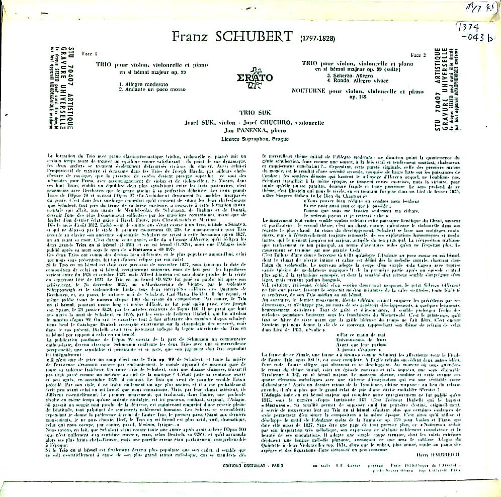 商品コード:1334-043b[ERATO] スーク・トリオ/ シューベルト:Pfトリオ1番, Pf・Vn・Vcのためのノットゥルノ
