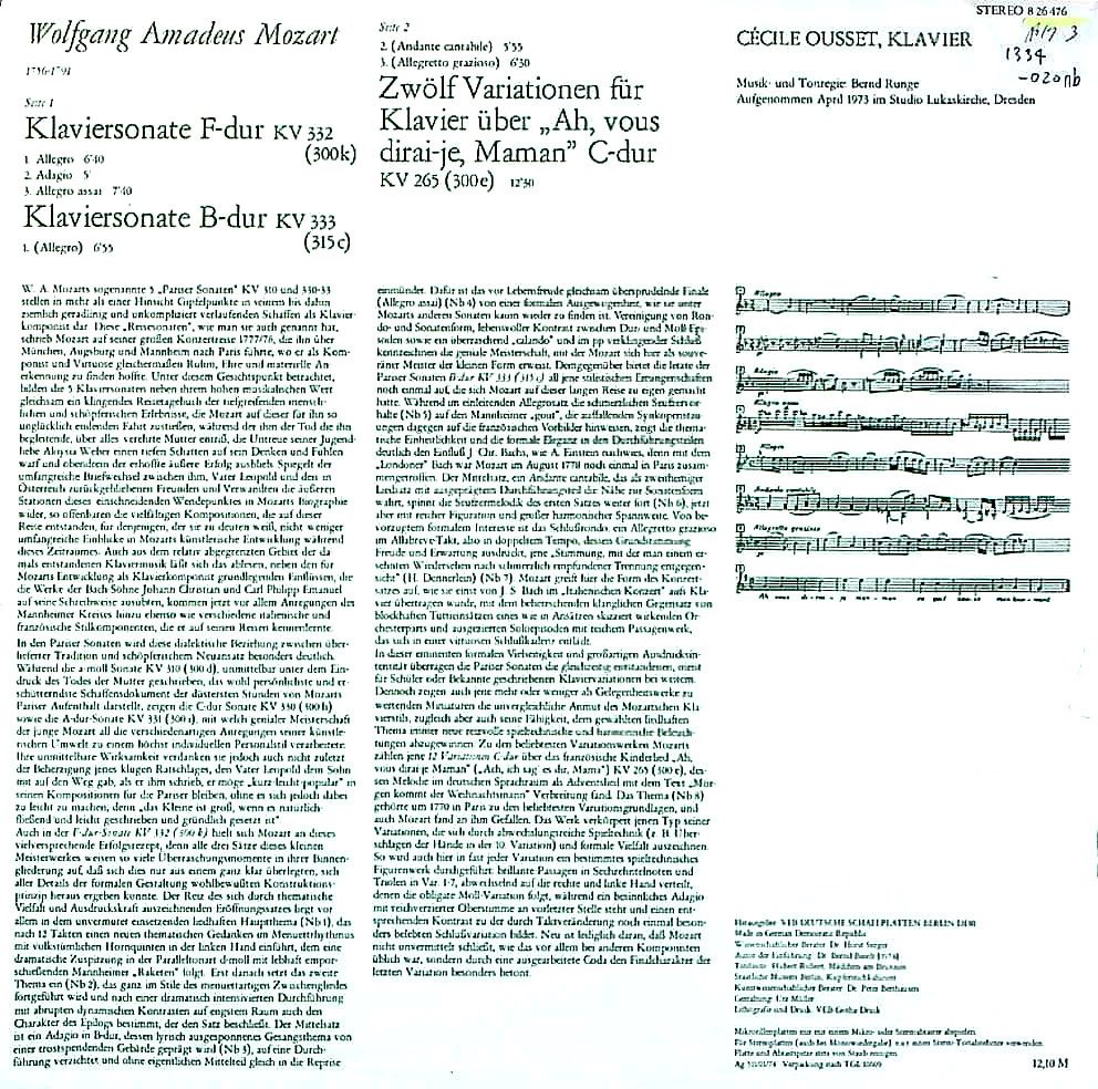 商品コード:1334-020nb[ETERNA] C.ウーセ(pf) / モーツァルト:Pfソナタ12, 13番, きらきら星変奏曲