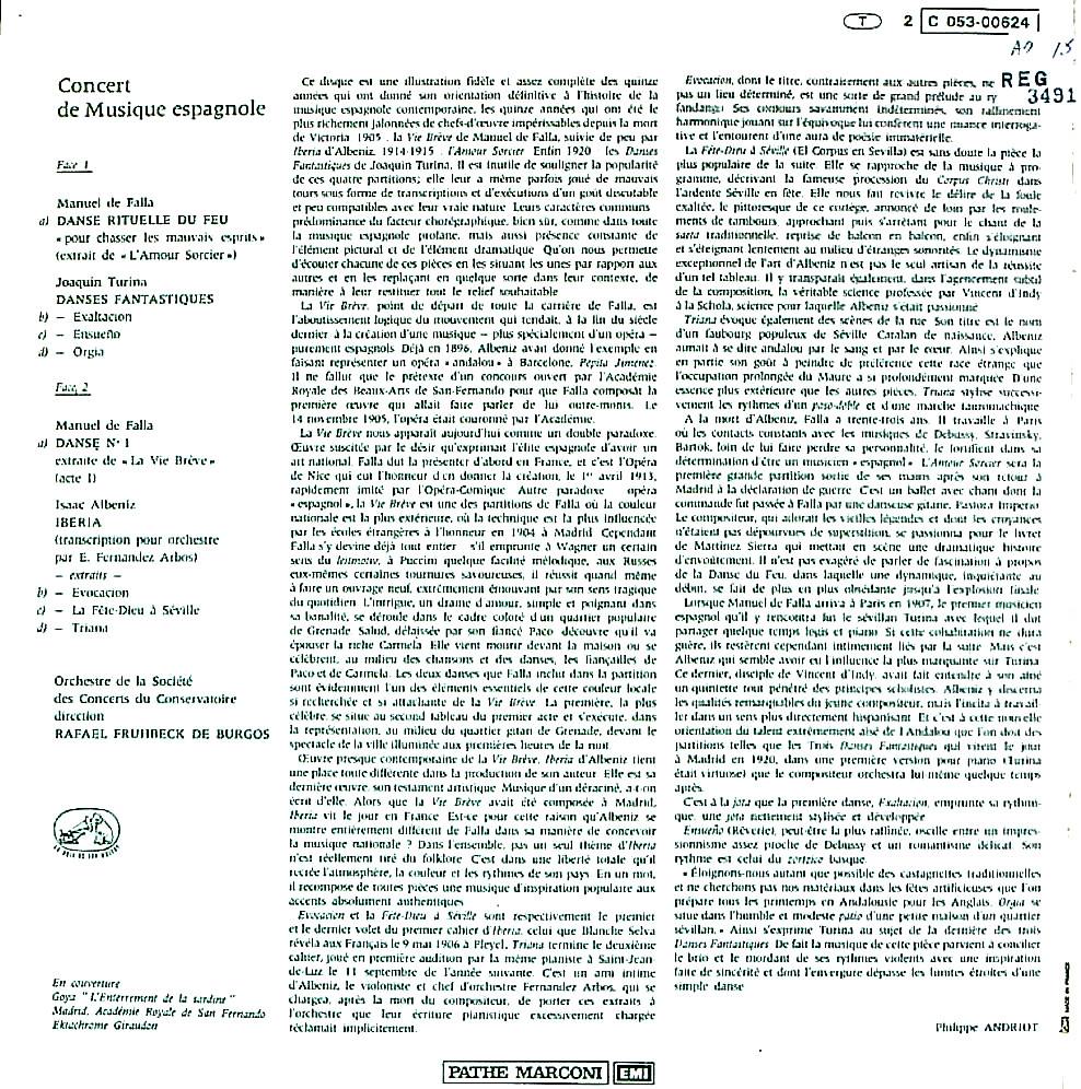 商品コード:REG-3491[仏VSM] R.フリューベック・デ・ブルゴス指揮/ スペイン音楽コンサート/ファリャ, トゥリーナ, アルベニス:イベリア~3曲