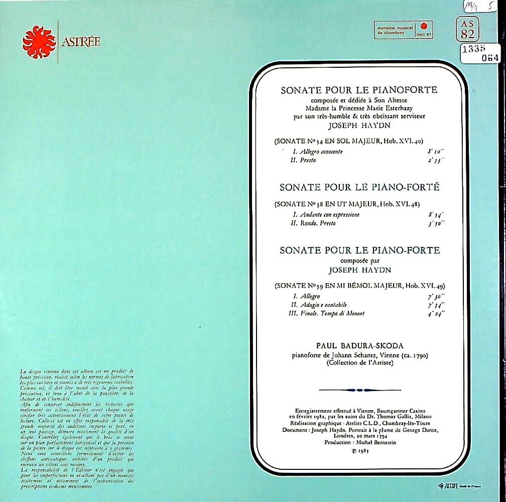 商品コード:1335-064[ASTRÉE] P.バドゥラ・スコダ(hf) / ハイドン:Pfソナタ48, 40, 49番