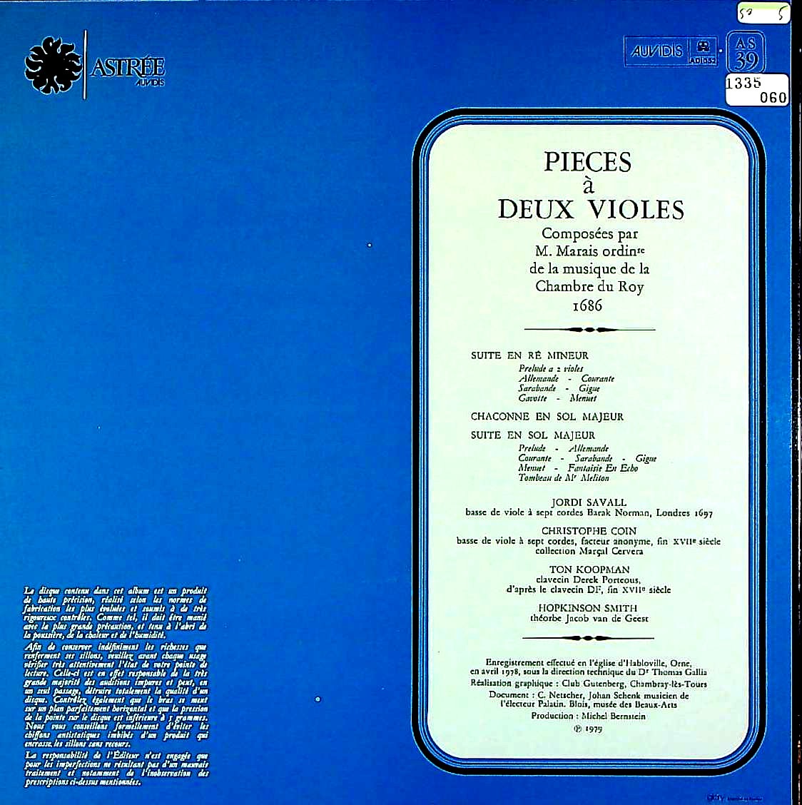 商品コード:1335-060p[ASTRÉE] J.サヴァール(バス・gamb) / マレ:ヴィオール曲集-第1巻