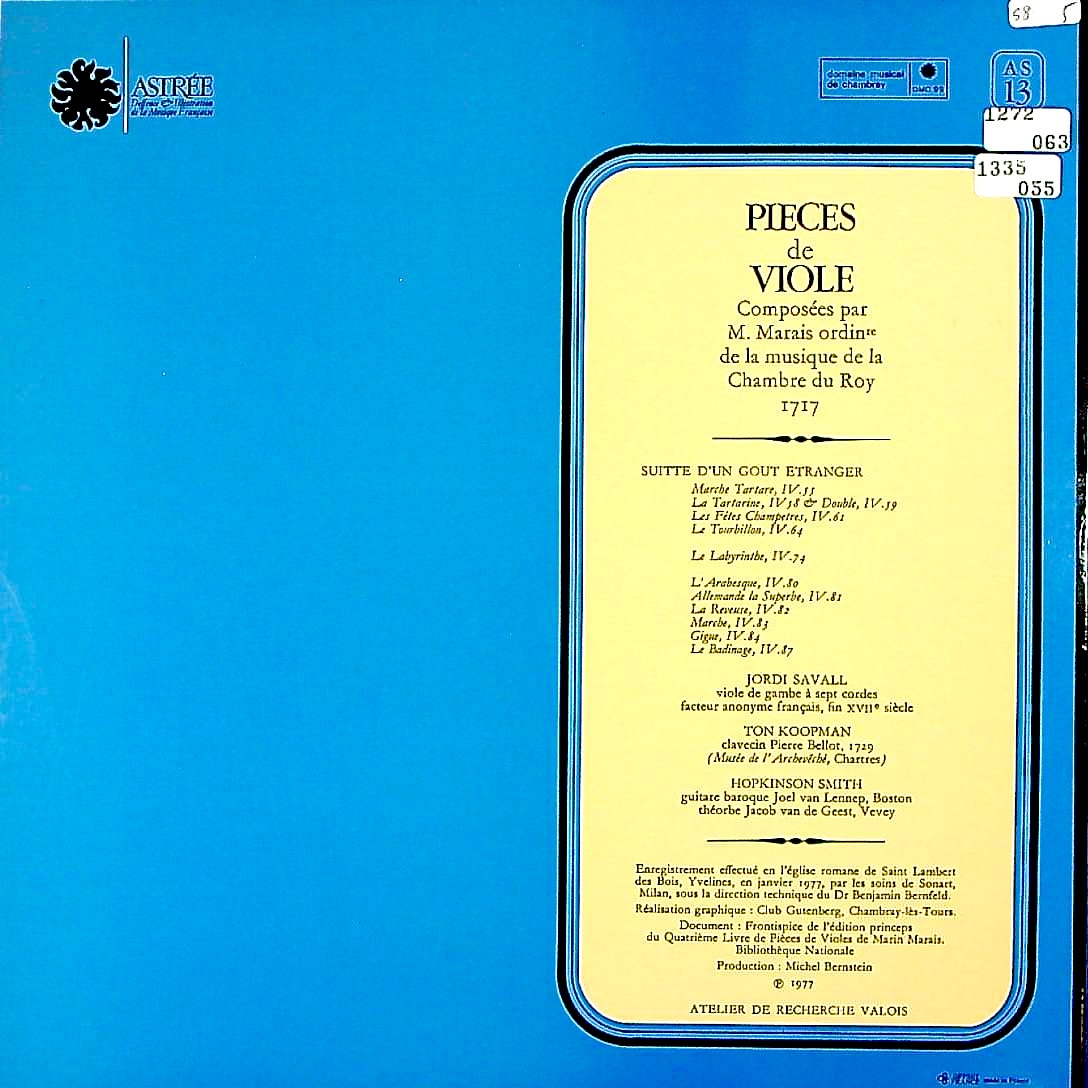 商品詳細:ジョルディ・サヴァールは1941年スペイン生まれのガンバ奏者。正しくはザヴァーリだが日本ではサヴァール又はサバール(WIKI)が通用している。サバールよりサヴァールがより近い為、当社ではサヴァールで統一することにした。ジョルディ・サヴァールはバルセロナ音楽院でチェロを学び、卒業後は独学でヴィオラ・ダ・ガンバおよび古楽を学ぶ。1968年よりバーゼル・スコラ・カントルムでアウグスト・ヴェンツィンガーに師事。研鑽を積み、1973年に師アウグスト・ヴェンツィンガーを継いで後進の指導にあたる。音楽界における傑出した人物として知られ、奏者およびディレクターとして過去40年以上にわたり調査、研究、そして解釈に力を注いでいる。既にクイケンやアーノンクールが古楽録音を始めており、キャリアが出遅れた。本人はこう語っている。「私は古楽を志してから最初のレコーディングをするまでに10年の歳月を費やしました。10年の間、毎日少なくとも8時間は練習した。それだけの時間を費やしてようやく古楽の「語法」が自然に感じられるようになったんです」。1970年代中期からASTRÉEの専属となり、多くの録音を残した。ここでは17世紀後半に作られた古楽器・7弦のヴィオラ・ダ・ガンバ(背作者不明)を使用。これまでジョルディ・サヴァールには特定の専属レーベルがなく、このLP以前にも録音はあったと思われるが、1975年録音のAS 1のASTRÉE第1号LPでによって注目され、異色のヴィオラ・ダ・ガンバ奏者として世に知れることとなった。AS 1の成功でその後続々とサヴァール参加のLPが製作され、ASTRÉEレーベルの顔となってゆく。サヴァールが最も注目したのがマラン・マレ(1656-1728)である。マレーとも呼ばれるフランスの作曲家、指揮者、バス・ヴィオール(ヴィオラ・ダ・ガンバ)奏者。彼は1992年までかかってマレのヴィオール組曲全5巻を録音。しかしLPで録音・発売されたのは順番に第2巻(1975年)、第4巻(1977年)、第1巻(1978年)の3枚3巻にとどまった。CDで第5巻(1983年)、第3巻(1992年)を録音。サヴァールのバーゼルゆずりの正統派スタイルで聴く本格派の演奏。これがマレの第2弾となった第4巻(1717)である。マレの作品はこれまでフランスレーベルでも殆ど取り上げられることはなかったが、ASTRÉEレーベルのサヴァールの演奏によって、脚光を浴びることになる。ASTRÉEのサヴァールを聴いて古楽のファンになった方は多いと思われる。