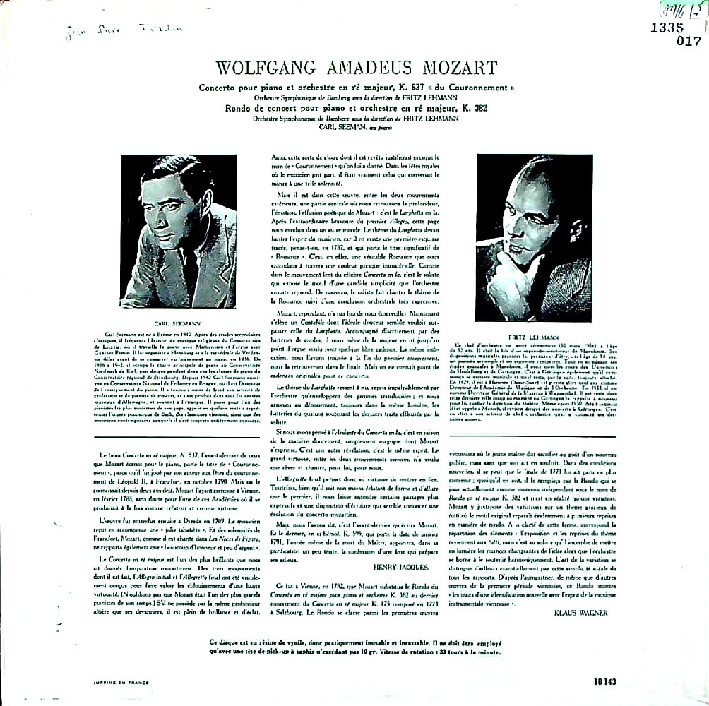 商品コード:1335-017p[DGG] C.ゼーマン(pf)/ モーツァルト:Pf協奏曲26番K.537「戴冠式」, ロンド