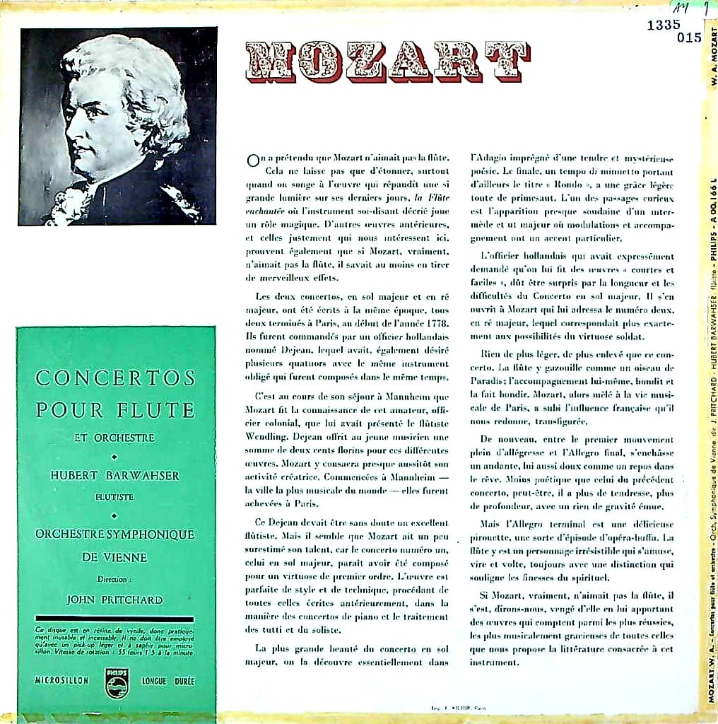 商品コード:1335-015p[PHILIPS] H.バルワーザー(fl)/ モーツァルト:Fl協奏曲1, 2番