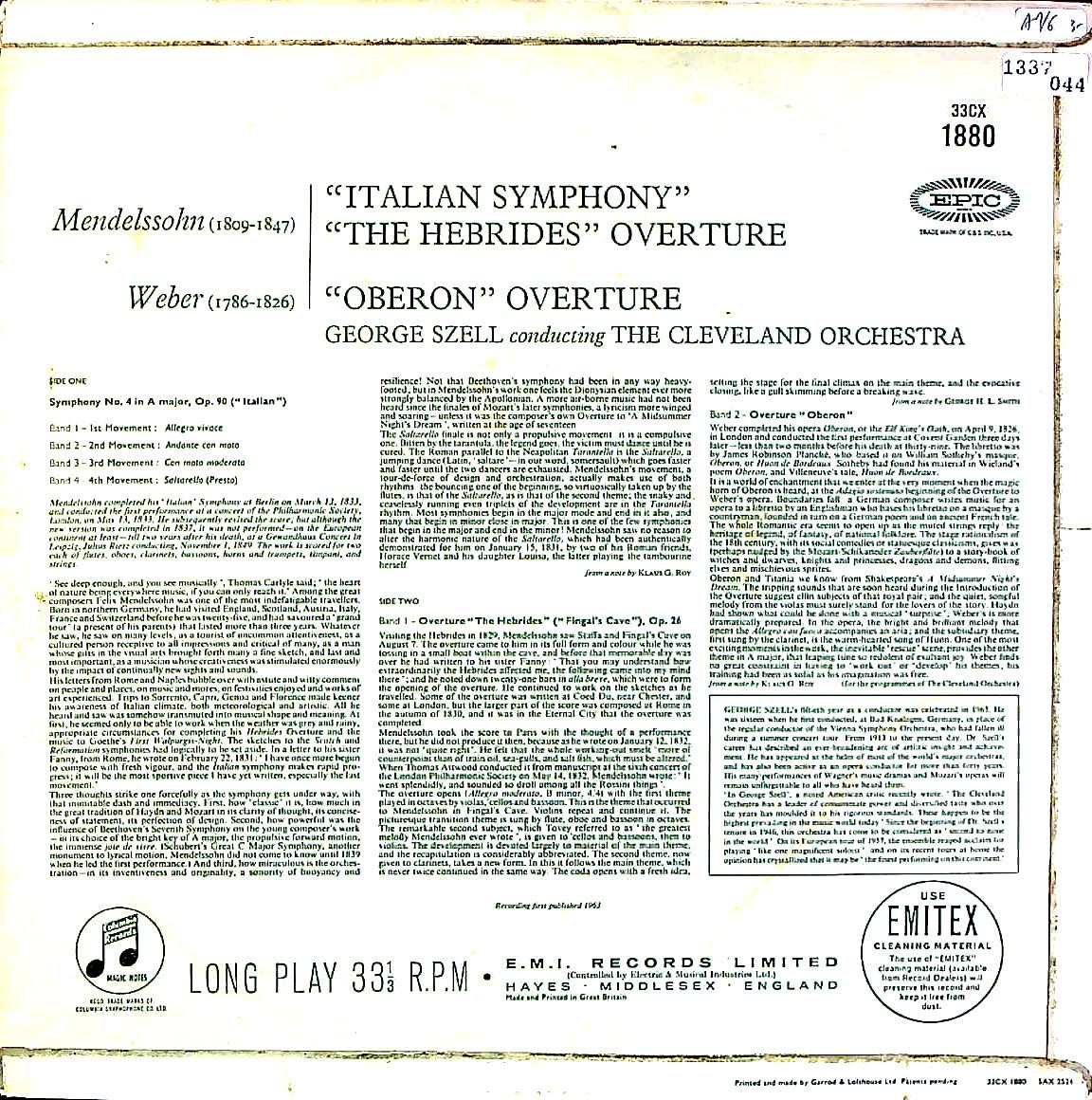 商品コード:1337-044[COLUMBIA] G.セル指揮/ メンデルスゾーン:交響曲4番「イタリア」, フィンガルの洞窟, ウェーバー:オベロン~序曲