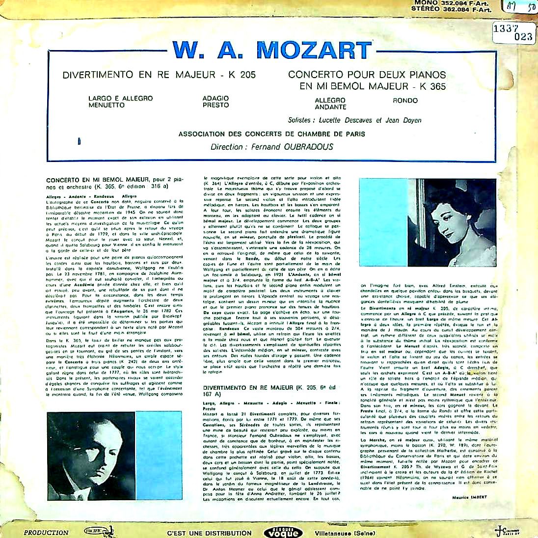 商品コード:1337-023p[Orphée] L.デカーヴ, J.ドワイヤン(pf) F.ウーブラドゥ指揮/ モーツァルト:ディヴェルティメント7番, Pf協奏曲10番(2台用)