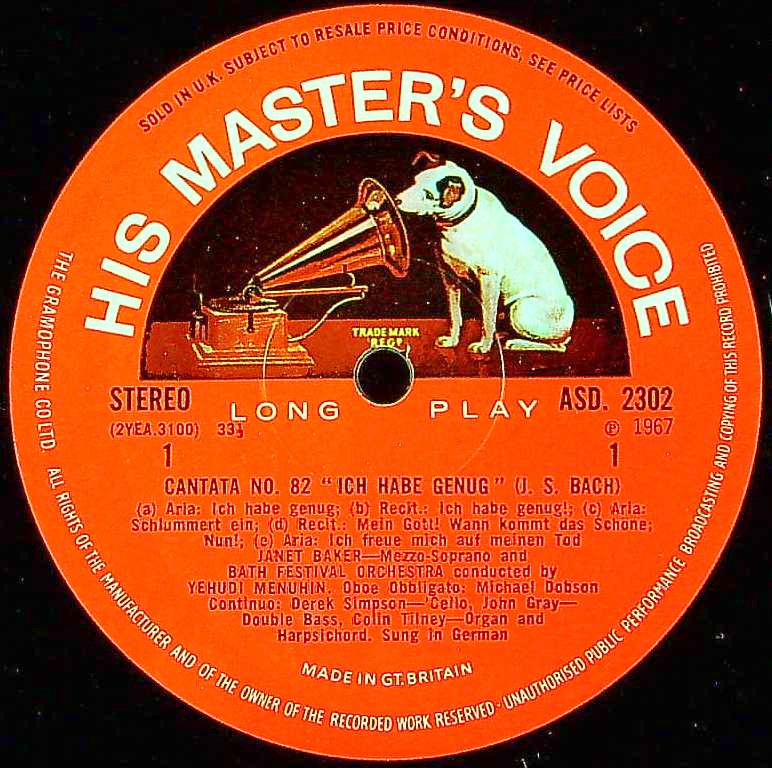 商品コード:1338-013[HMV] J.ベイカー(ms) Y.メニューイン指揮/ バッハ:カンタータ 82, 169番