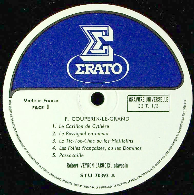 商品コード:REG-3544[仏ERATO] R.ヴェイロン・ラクロワ(cemb) / F.クープラン:Cemb曲選集(11曲)
