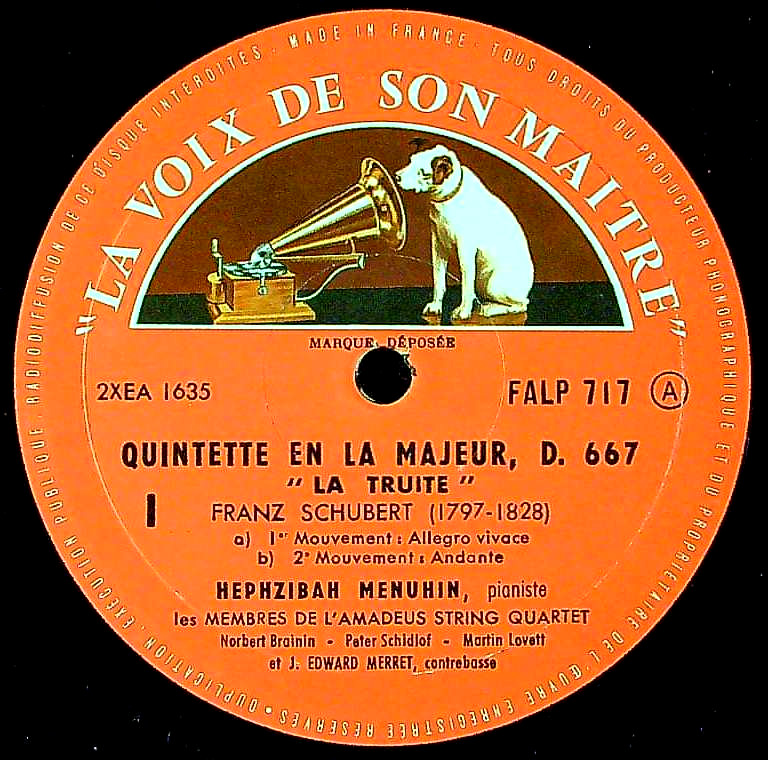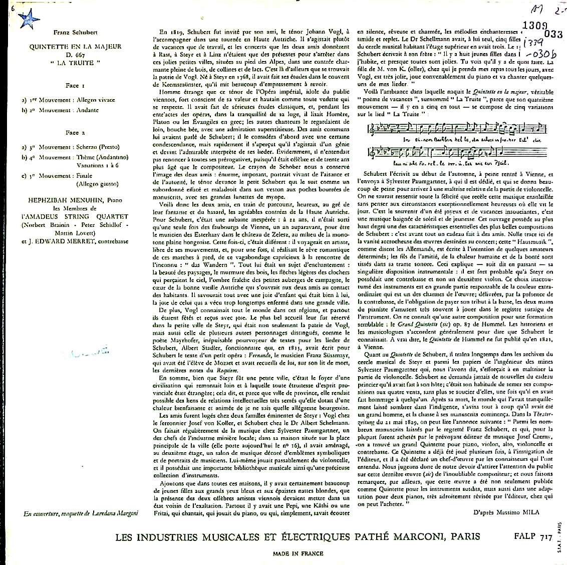 商品コード:1339-030b[VSM] H.メニューイン(pf) アマデウスQt.メンバー J.E.メレット(cb) / シューベルト:五重奏曲「鱒」