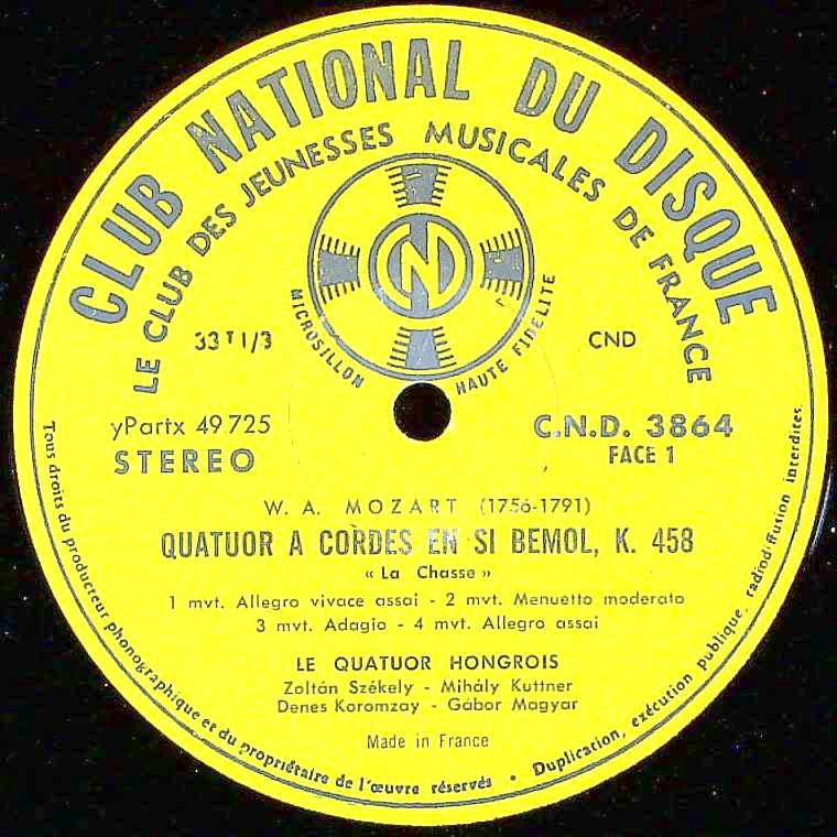 商品コード:1339-019p[CLUB NATIONAL] ハンガリーQt. / モーツァルト:弦楽四重奏曲17番K.458「狩」, 19番K.465「不協和音」
