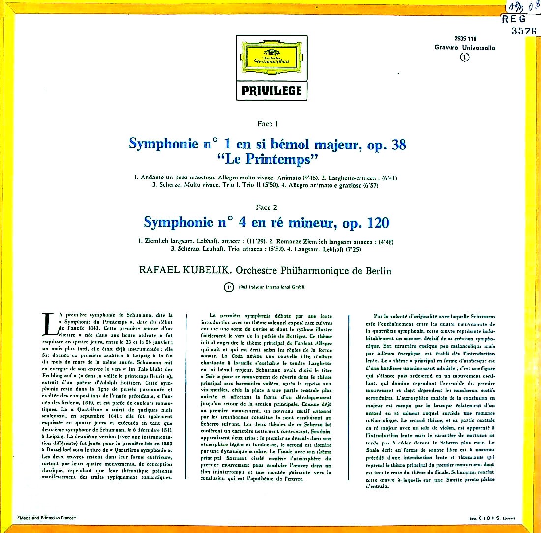 商品コード:REG-3576[仏DGG] R.クーベリック指揮/ シューマン:交響曲1番「春」, 4番