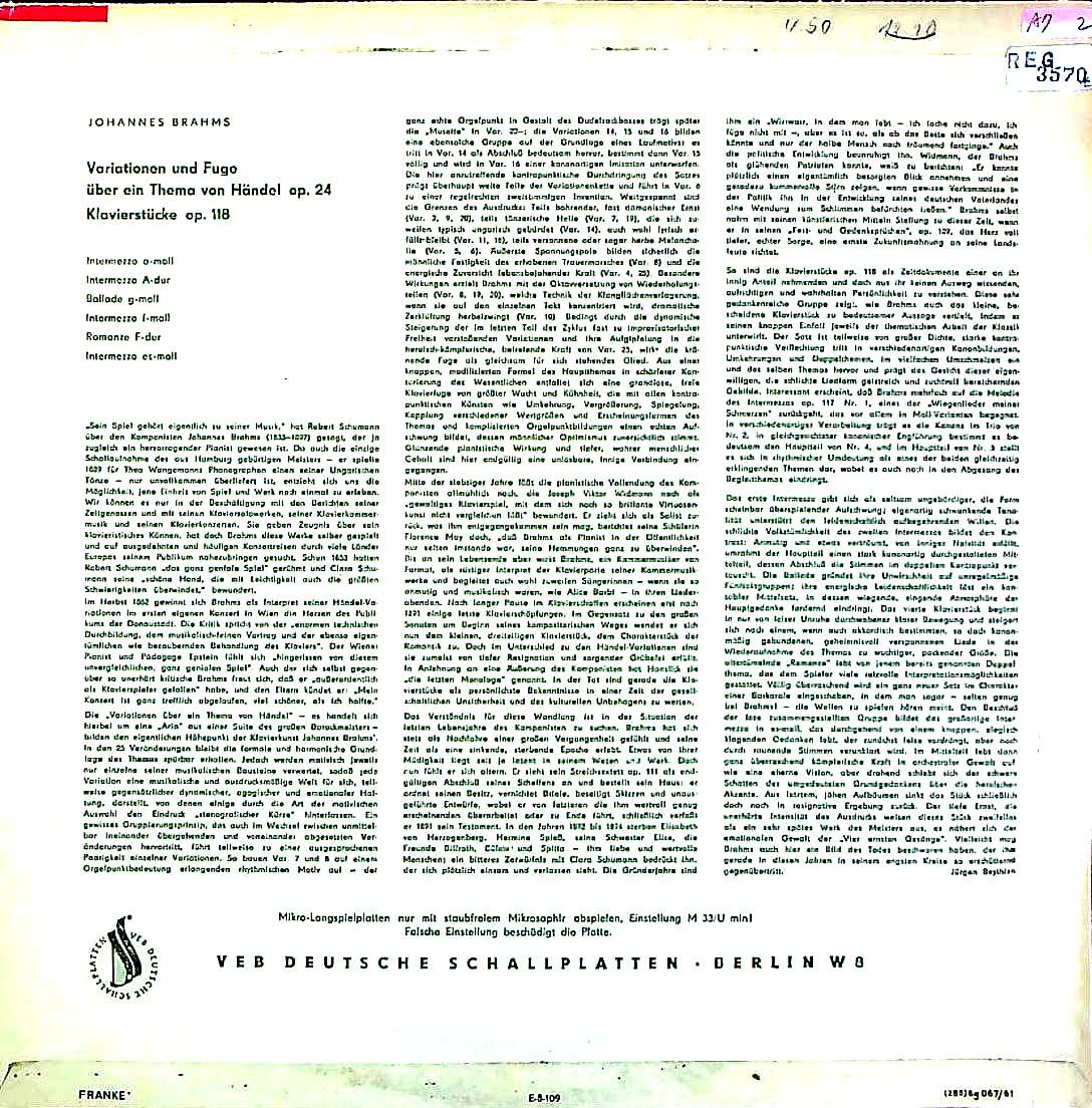 商品コード:REG-3570t[東独ETERNA] G.プッヒェルト(pf) / ブラームス:ヘンデル変奏曲, 6つの小品