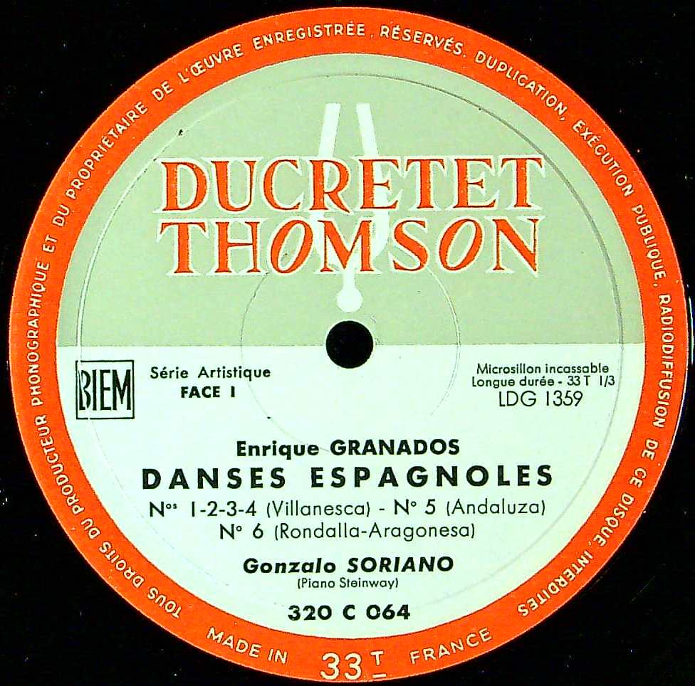 商品コード:1340-057[Ducretet Thomson] G.ソリアーノ(pf) / グラナドス:12のスペイン舞曲集
