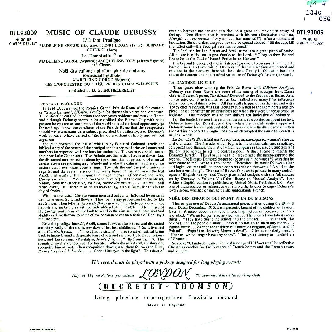 商品コード:1340-056p[LONDON-Ducretet Thomson] D.E.アンゲルブレシュト指揮/ ドビュッシー:放蕩息子 他