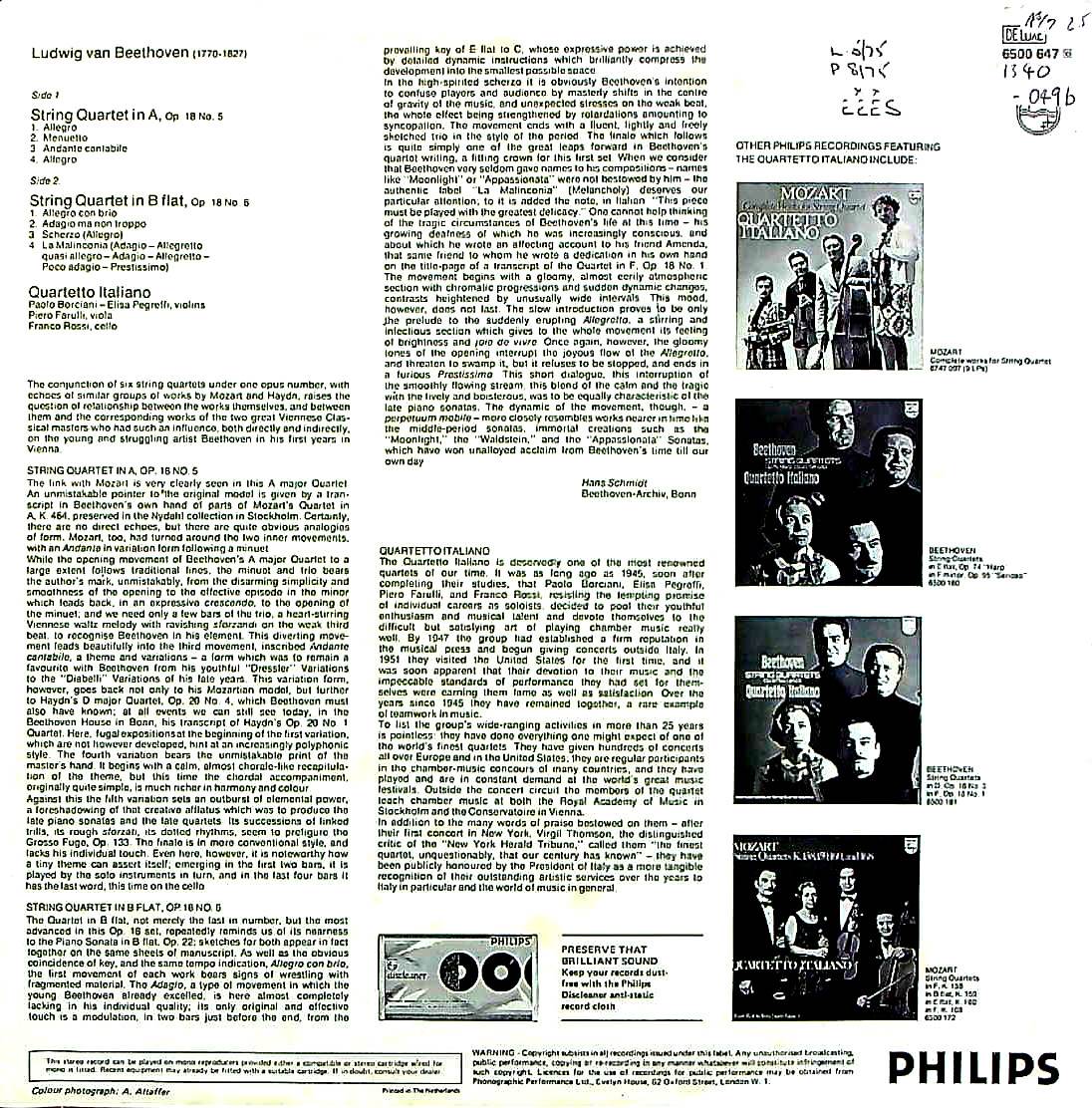 商品コード:1340-049b[PHILIPS] イタリアQt. / ベートーヴェン:弦楽四重奏曲5, 6番