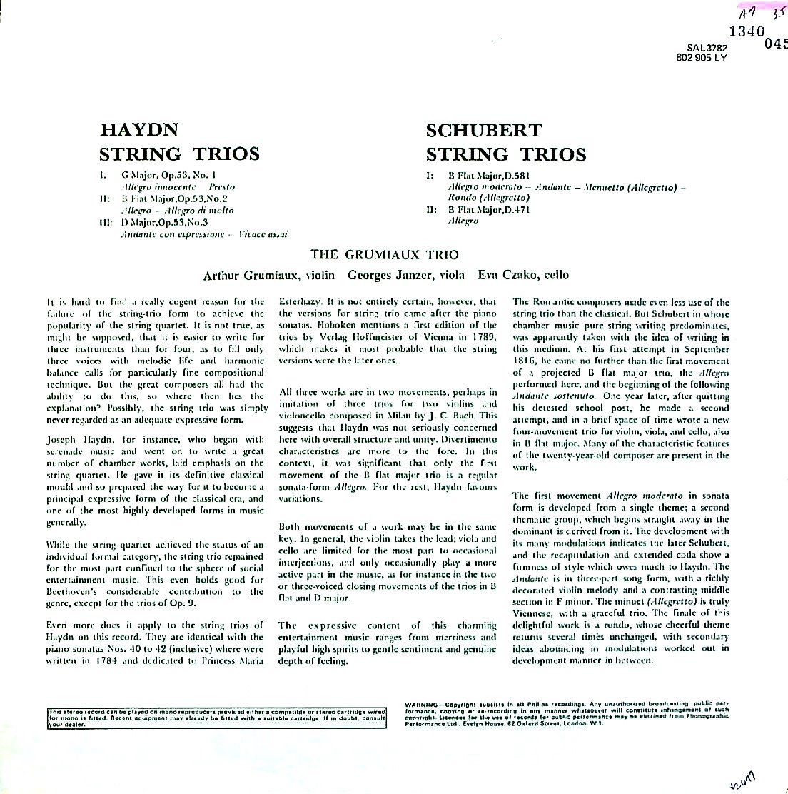商品コード:1340-045t[PHILIPS] グリュミオー・トリオ / 弦楽トリオ/ハイドン, シューベルト