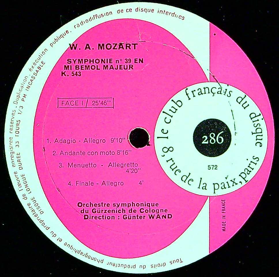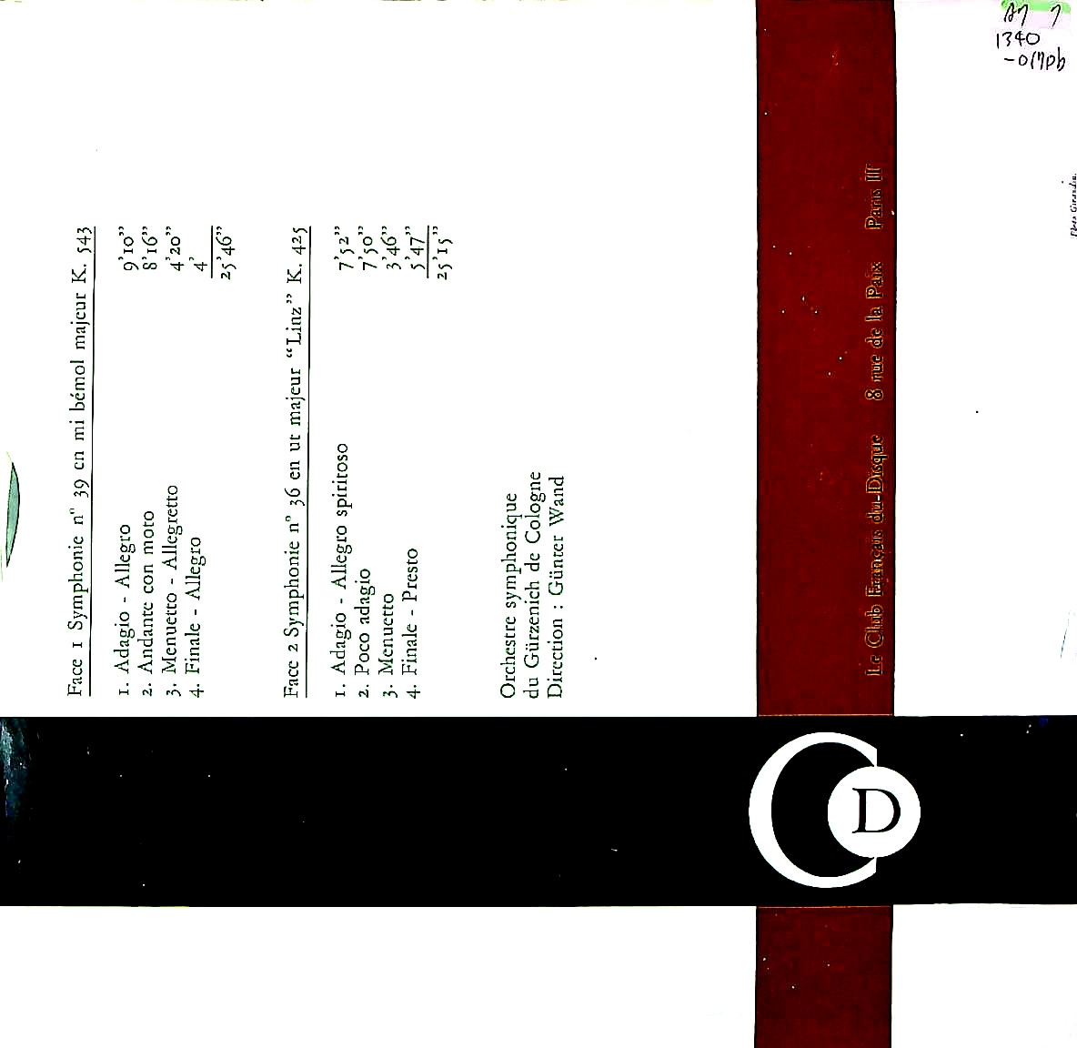 商品コード:1340-017pb[Club Français] G.ヴァント指揮/ モーツァルト:交響曲39番K.543 , 36番K.425「リンツ」