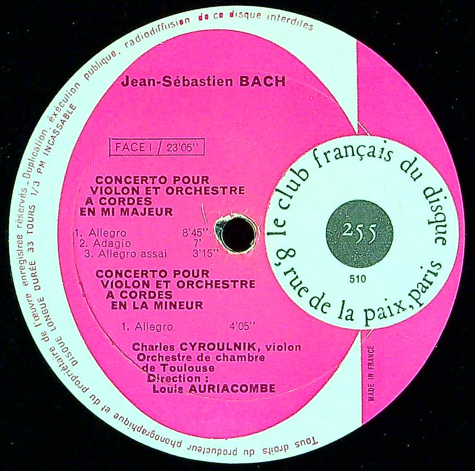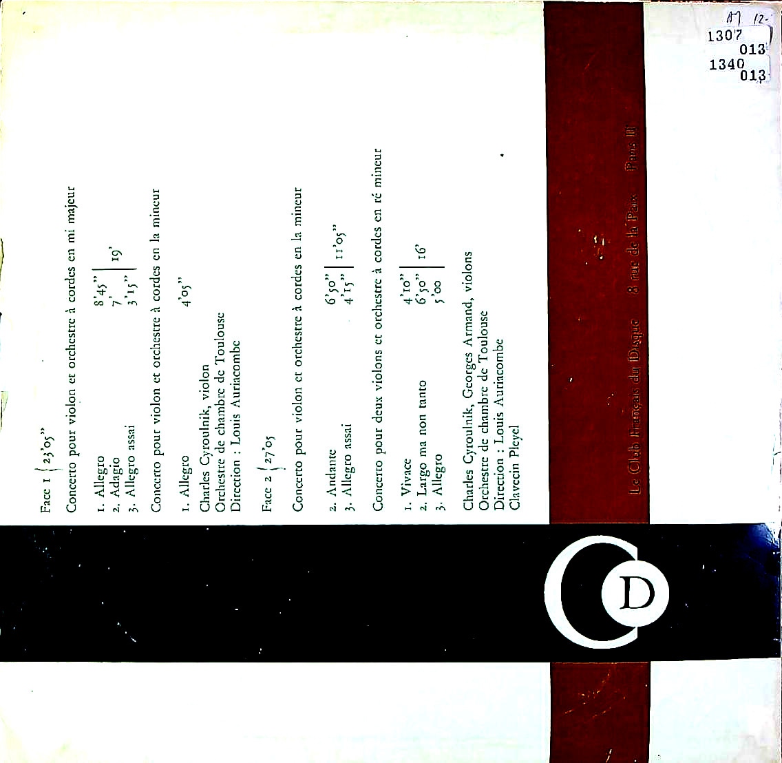 商品コード:1340-013[Club Français] C.シルルニク(vn) G.アルマン(vn)/ バッハ:Vn協奏曲1, 2番, 2Vn協奏曲