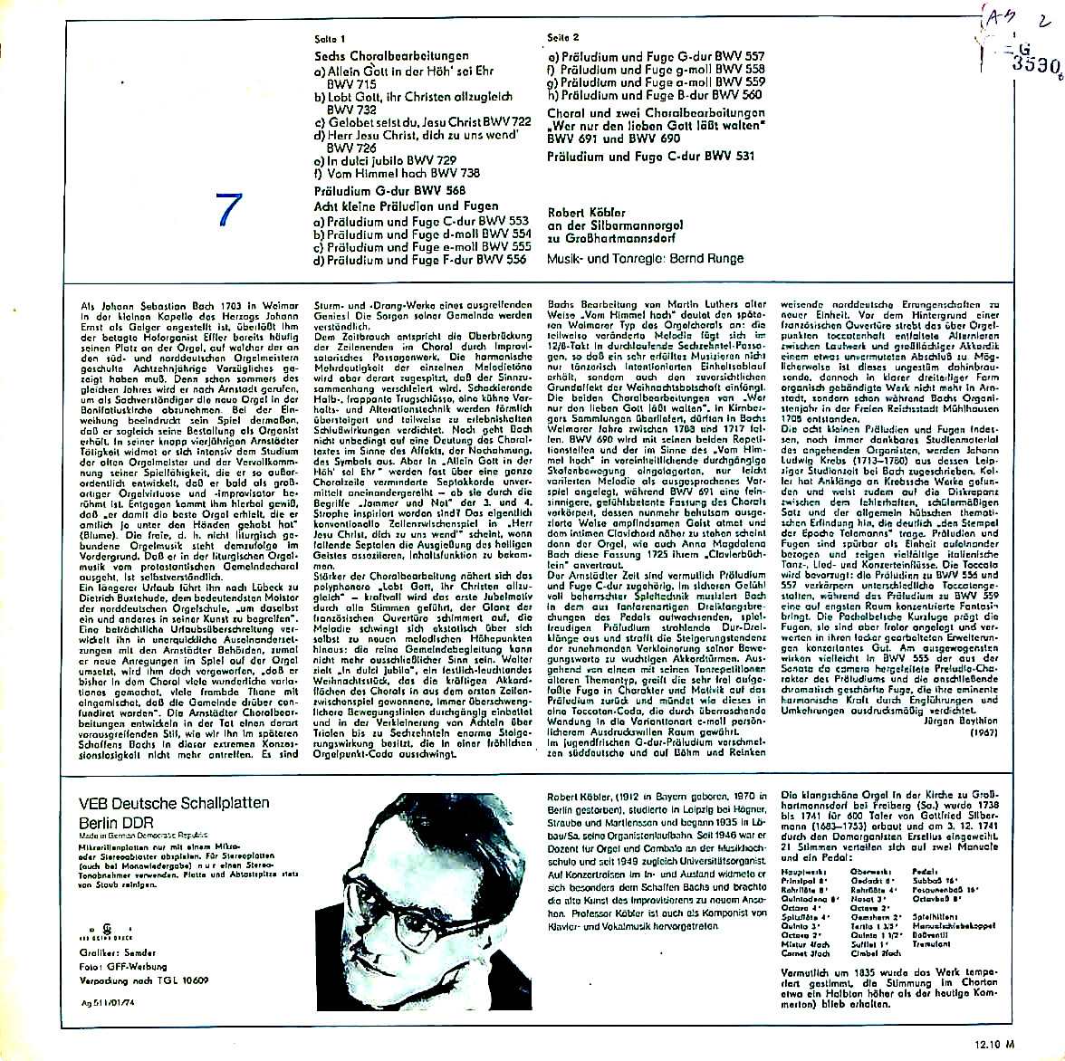 商品コード:REG-3590t[東独ETERNA] R.ケブラー(org) / バッハ:Org作品集Vol.7