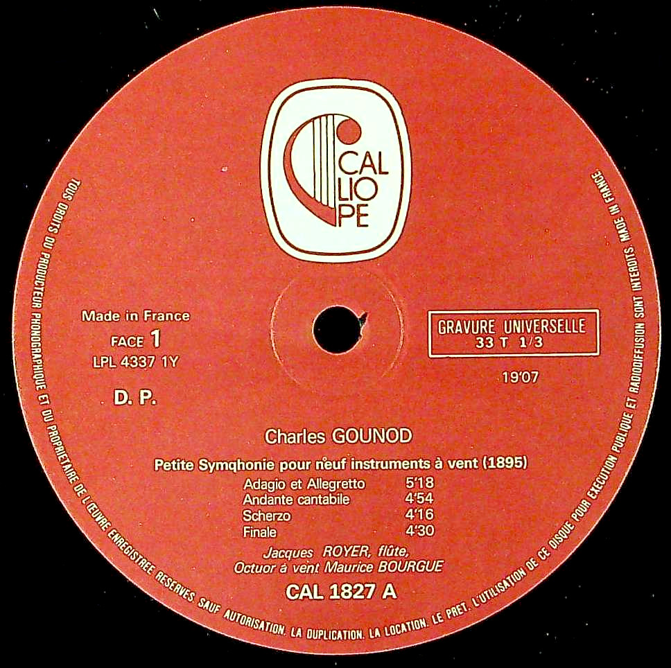 商品コード:1341-061b[CALLIOPE] モーリス・ブルゲ管楽八重奏団 / グノー:9つの管楽器のための小交響曲, ダンディ:歌と踊り