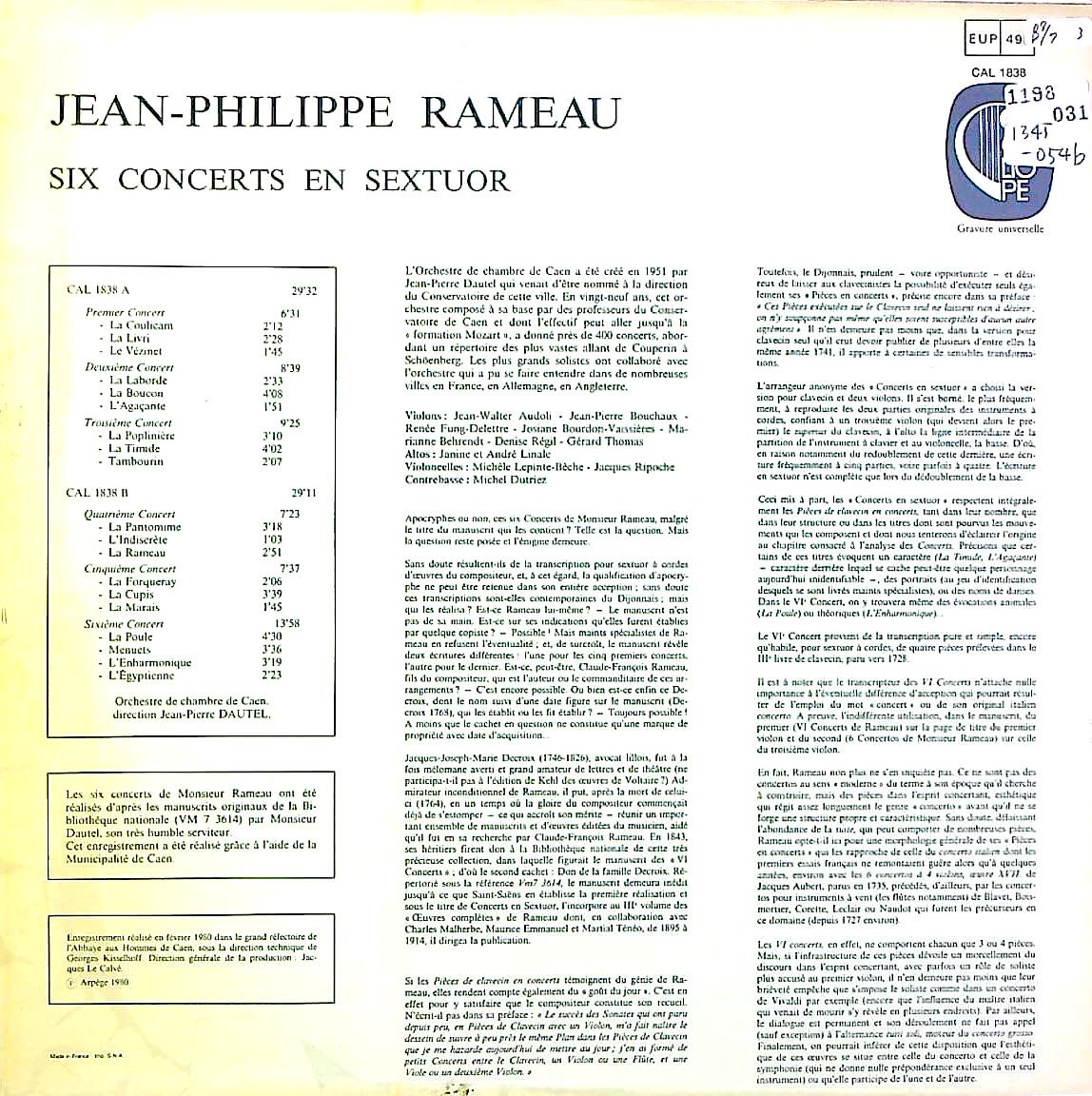商品コード:1341-054b[CALLIOPE] J.P.ドーテル指揮/ ラモー:六重奏用に編曲された6つのコンセール