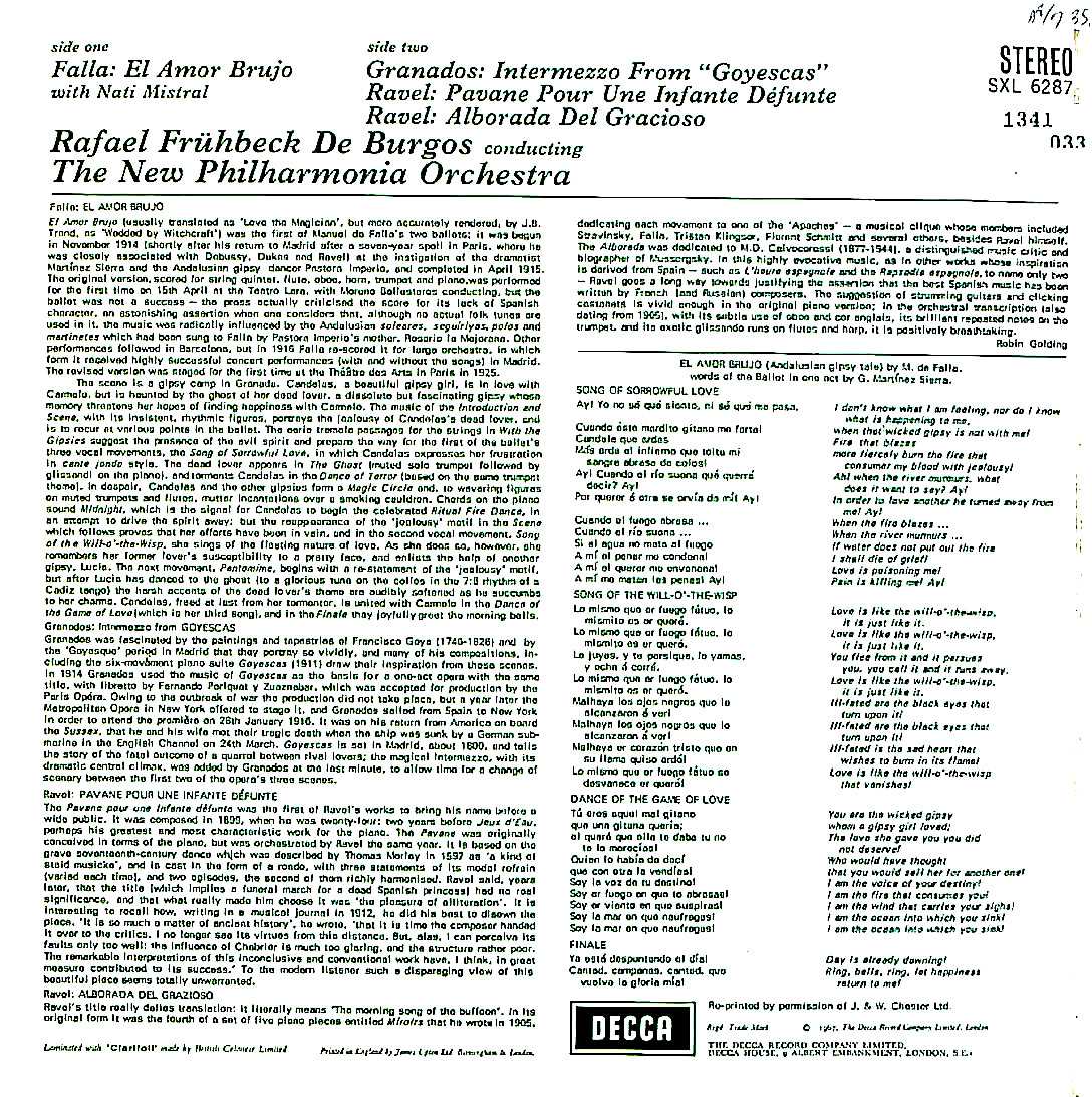 商品コード:1341-033[DECCA] R.フリューベック・デ・ブルゴス指揮/ ファリャ:恋は魔術師, グラナドス, ラヴェル