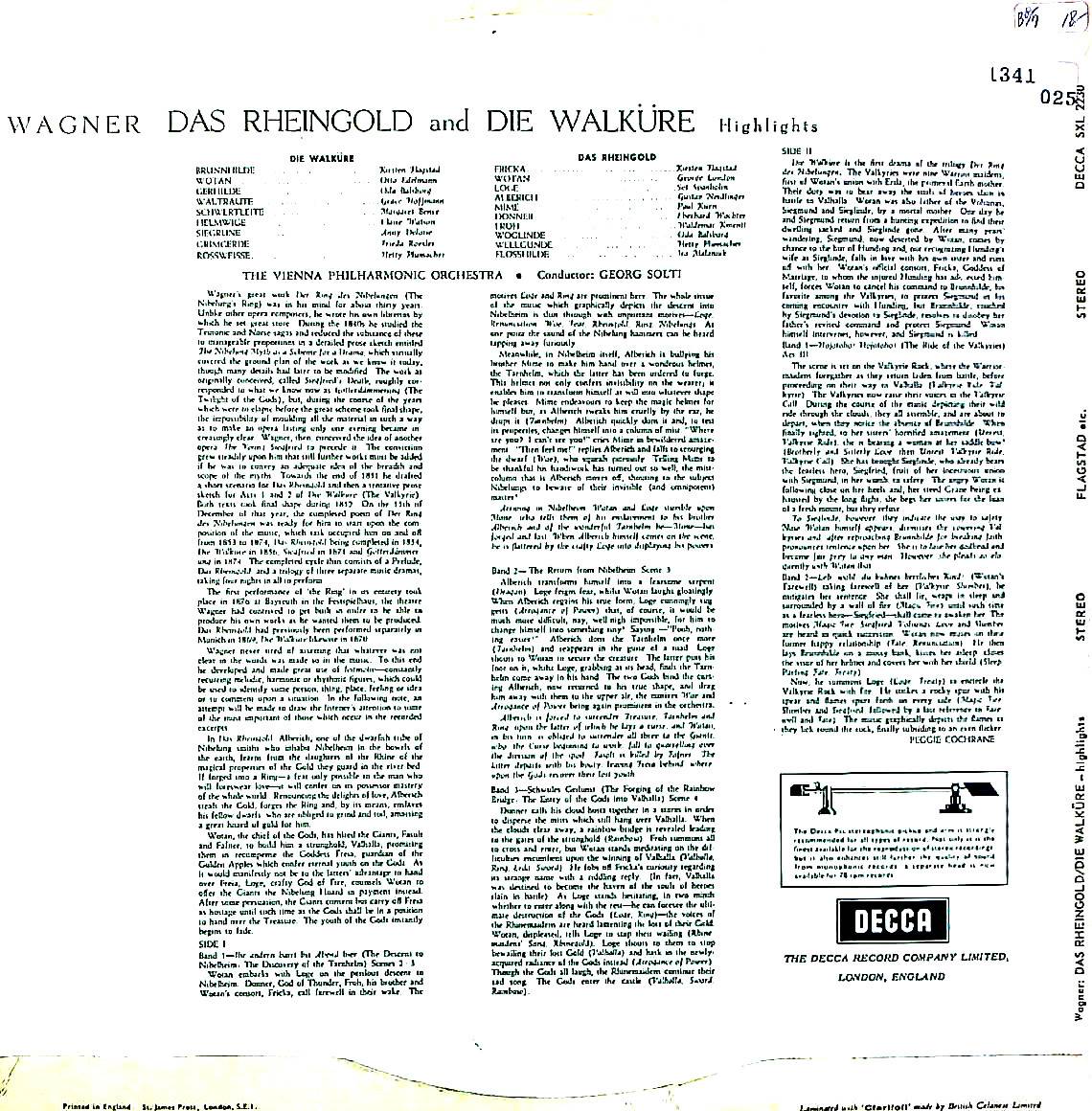 商品コード:1341-025[DECCA] G.ショルティ指揮/ ワーグナー:ラインの黄金(ハイライト), ワルキューレ(ハイライト)