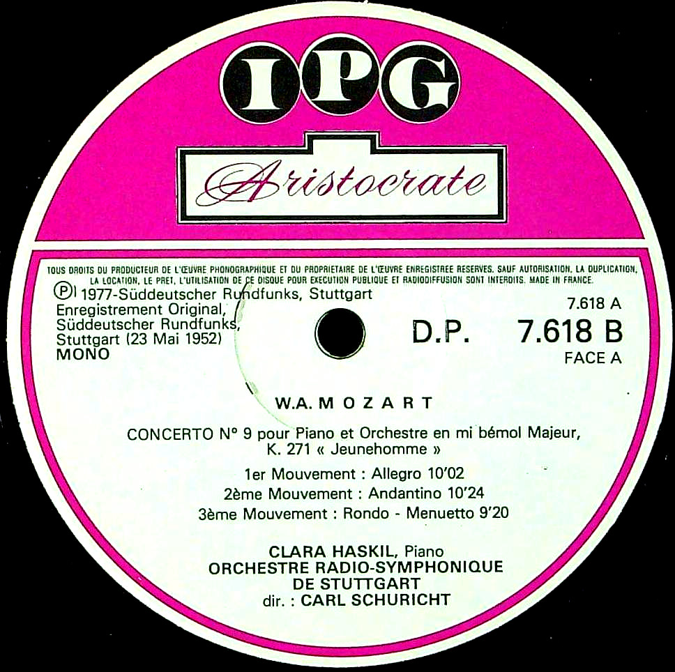 商品コード:1341-020[IPG] C.ハスキル(pf)/ モーツァルト:Pf協奏曲9, 19番