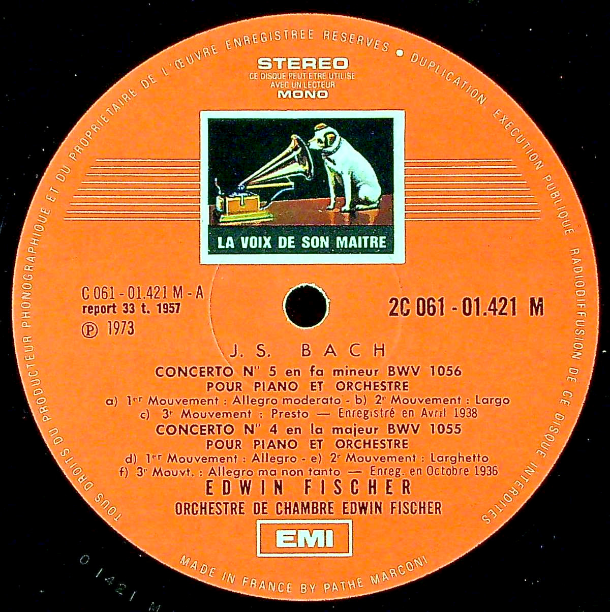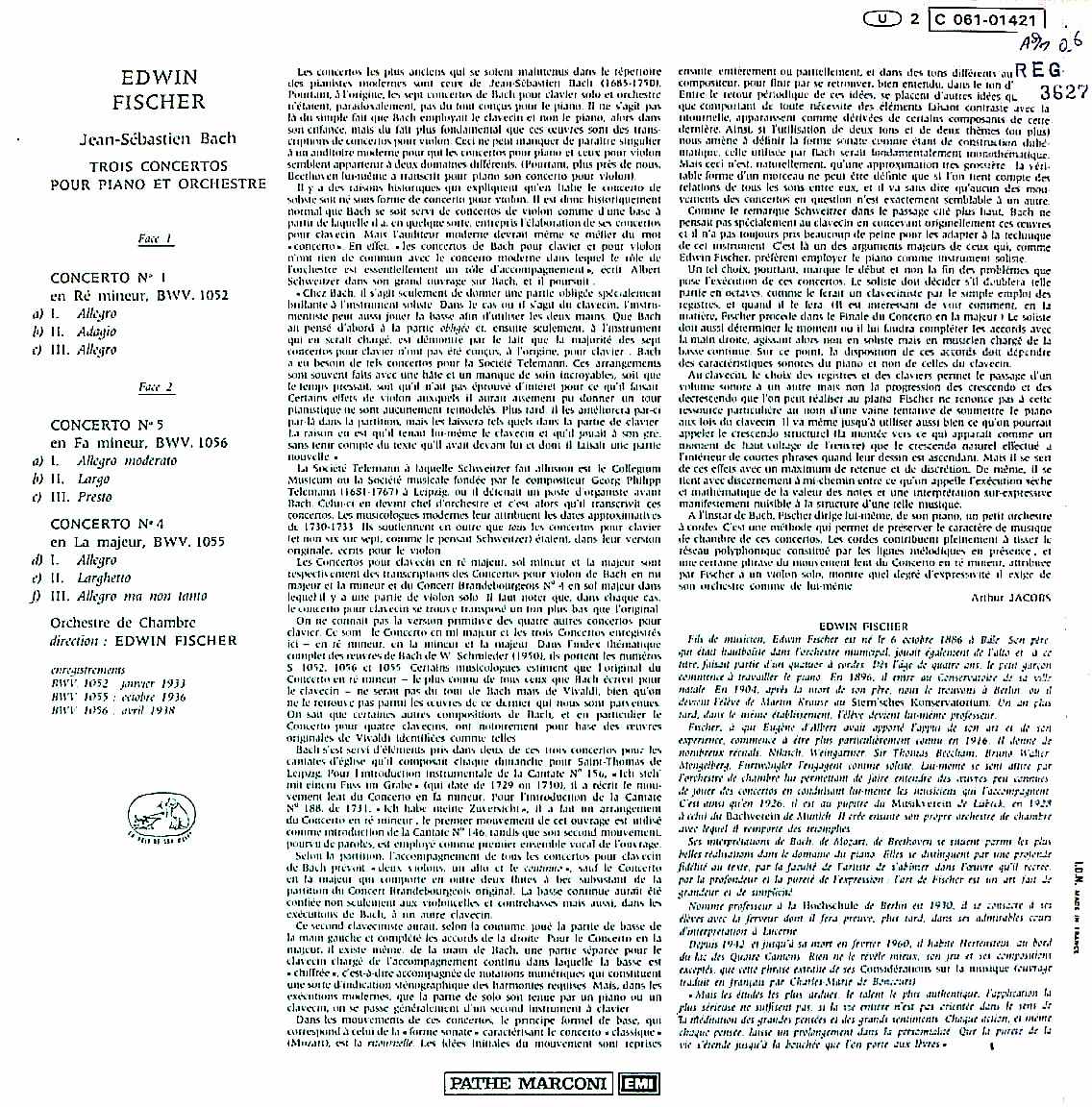 商品コード:REG-3627[仏VSM] E.フィッシャー(pf)指揮/ バッハ:Cemb協奏曲1, 4, 5番