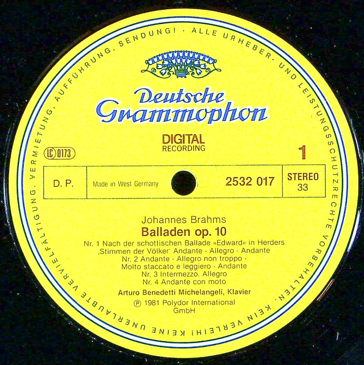 商品コード:REG-3621[独DGG] A.B.ミケランジェリ(pf) / ブラームス:バラード集, シューベルト:Pfソナタ4番